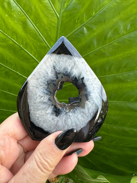 • Material: Natural black agate with druzy center