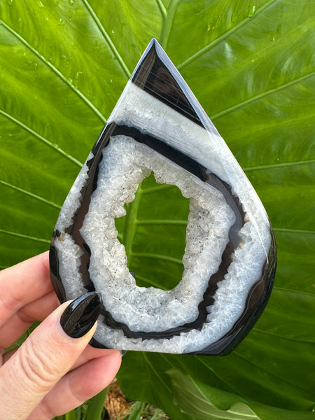 These black agate druzy flames are more than just beautiful stones — they are statement pieces that elevate any room. The hollow flame design gives them a sculptural, almost “artistic” quality, while the druzy in the middle adds a natural sparkle that is mesmerizing. Whether you’re a collector or seeking spiritual energy for your space, these flames make a perfect addition to any crystal collection.