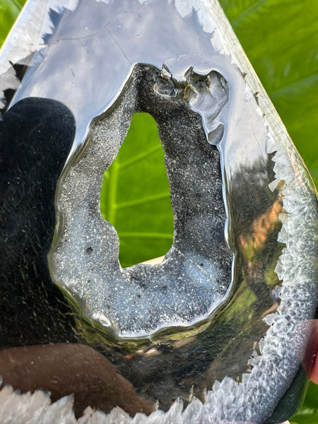 These black agate druzy flames are more than just beautiful stones — they are statement pieces that elevate any room. The hollow flame design gives them a sculptural, almost “artistic” quality, while the druzy in the middle adds a natural sparkle that is mesmerizing. Whether you’re a collector or seeking spiritual energy for your space, these flames make a perfect addition to any crystal collection.