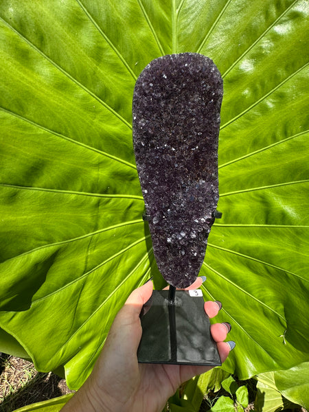Bring beauty, balance, and positive energy into your space with these stunning Amethyst Druzy Crystals on Stands. Each piece is a one-of-a-kind natural formation, featuring sparkling druzy points that shimmer in the light. Mounted on a sleek black stand, these crystals make a powerful statement piece for any home, office, altar, or healing space.