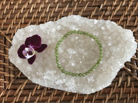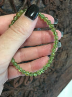 This purchase is for one (1) 6mm bead size Peridot Crystal Stretch Bracelet.